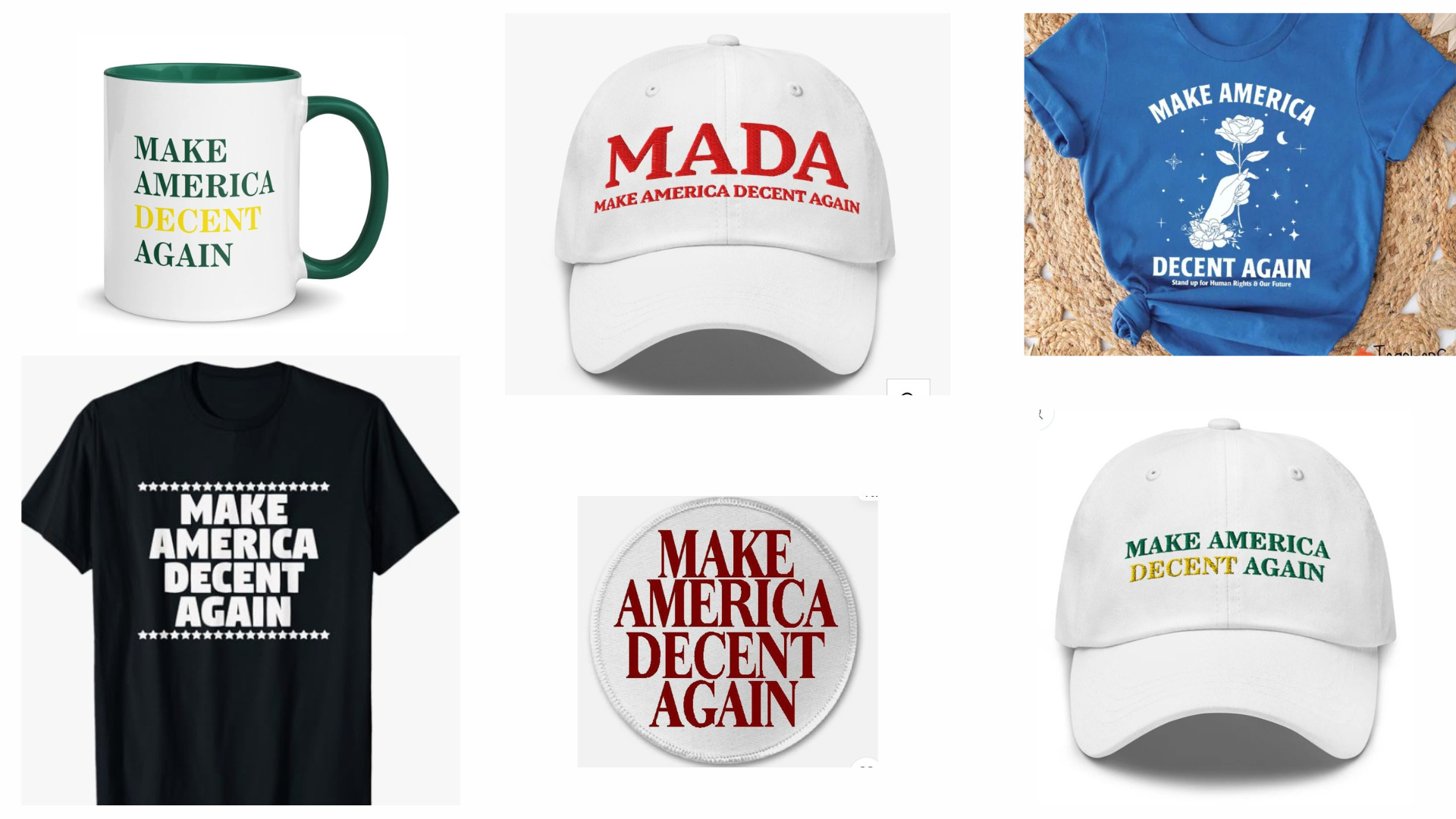 But here’s the thing. Right after I wrote this piece, we set up a link to purchase merch-on-demand MADA hats and Make American Decent Again hats, just as a joke. And you know what? We quickly discovered that several other people have already done the exact same thing (and not just hats; in the great American consumer tradition, there are MADA T-shirts, MADA cups, MADA thermoses, and much more).