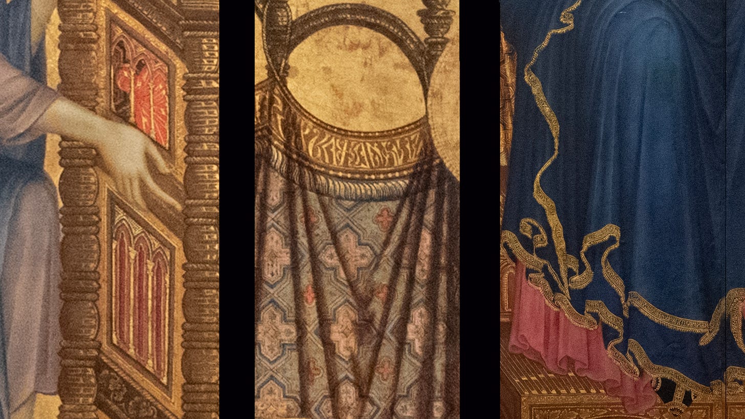 And then – once again – I returned to those halos. They’re not, as it turns out, simply solid globes as I had once thought, but instead inlaid with mesmerizingly intricate patterns that had been carefully, rigorously, inserted into the surrounding gold ground. This is hard to discern in a standard lower-resolution image of the enormous Rucellai Madonna – but trust me, they’re there.