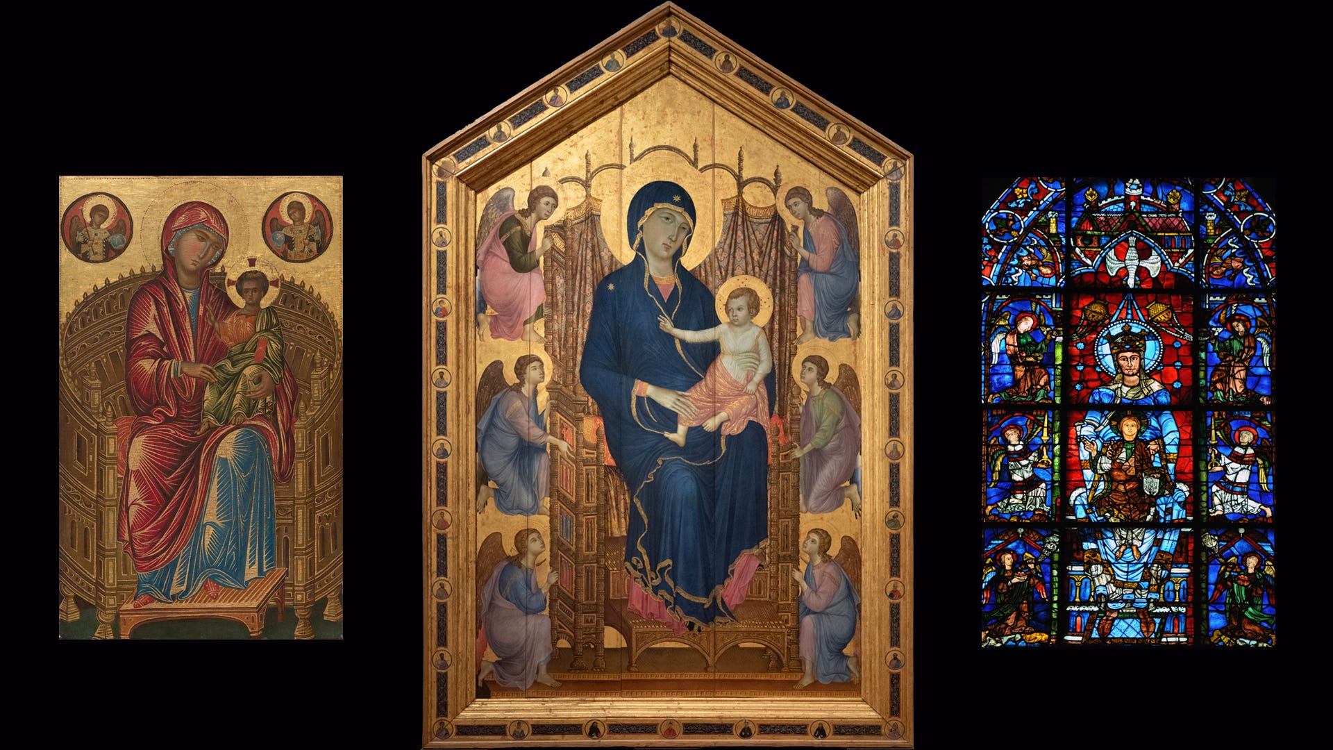 When I started these investigations several months ago, my understanding was very dry and theoretical. Duccio’s celebrated Rucellai Madonna (1285), I learned, was the product of Byzantine and French Gothic traditions, fully in keeping with his other famous late 13th-early 14th century Italian contemporaries. But on a personal level the painting itself, with its stiff, formal poses and clunky large halos, did nothing for me.