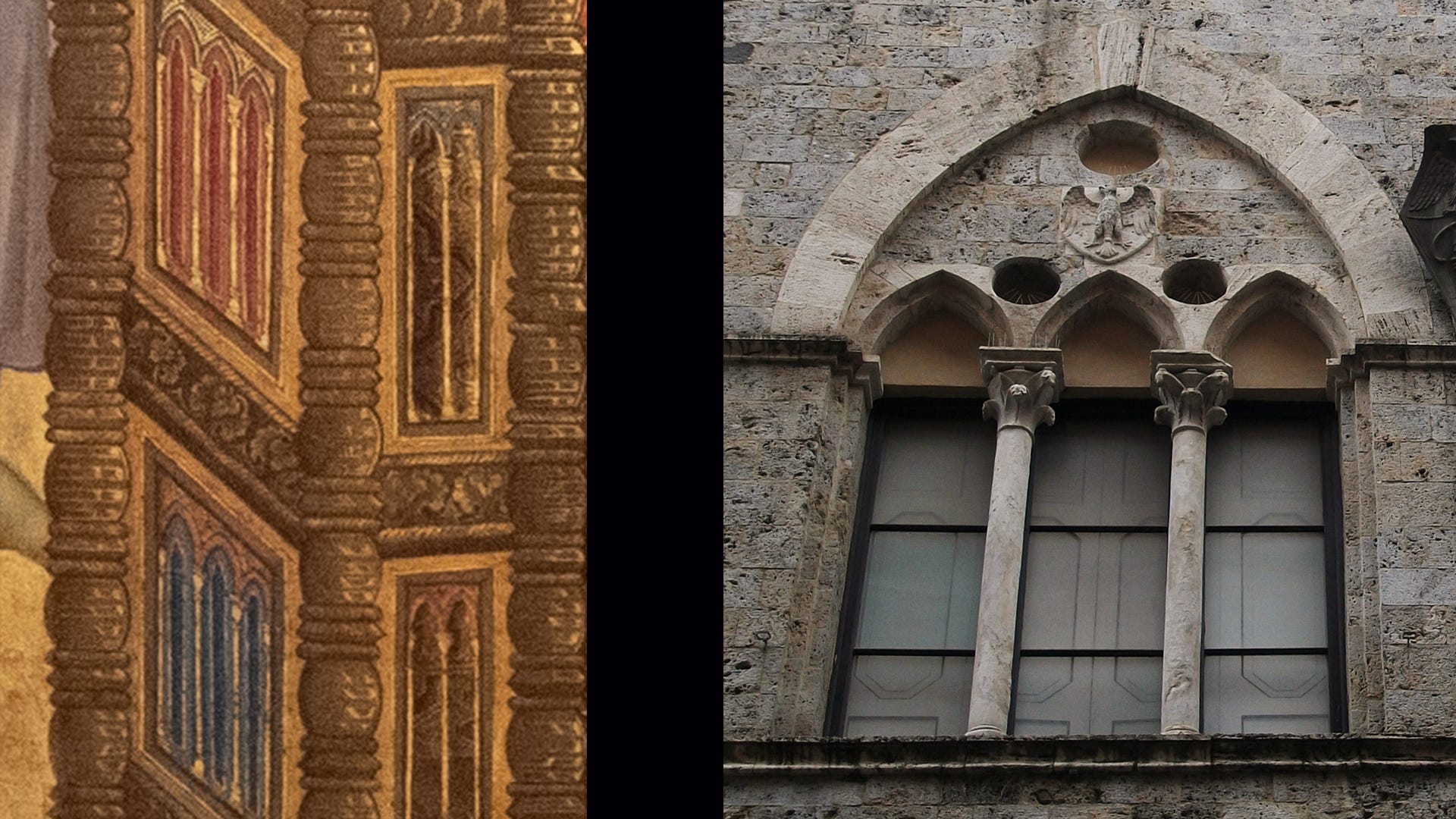 Was it mere coincidence that the lower part of the Virgin’s throne contained precisely the sort of “arched geminated windows” so often seen throughout Duccio’s home town of Siena that so forthrightly regarded itself as the “city of the Virgin”? Likely not. Details, glorious details, everywhere.