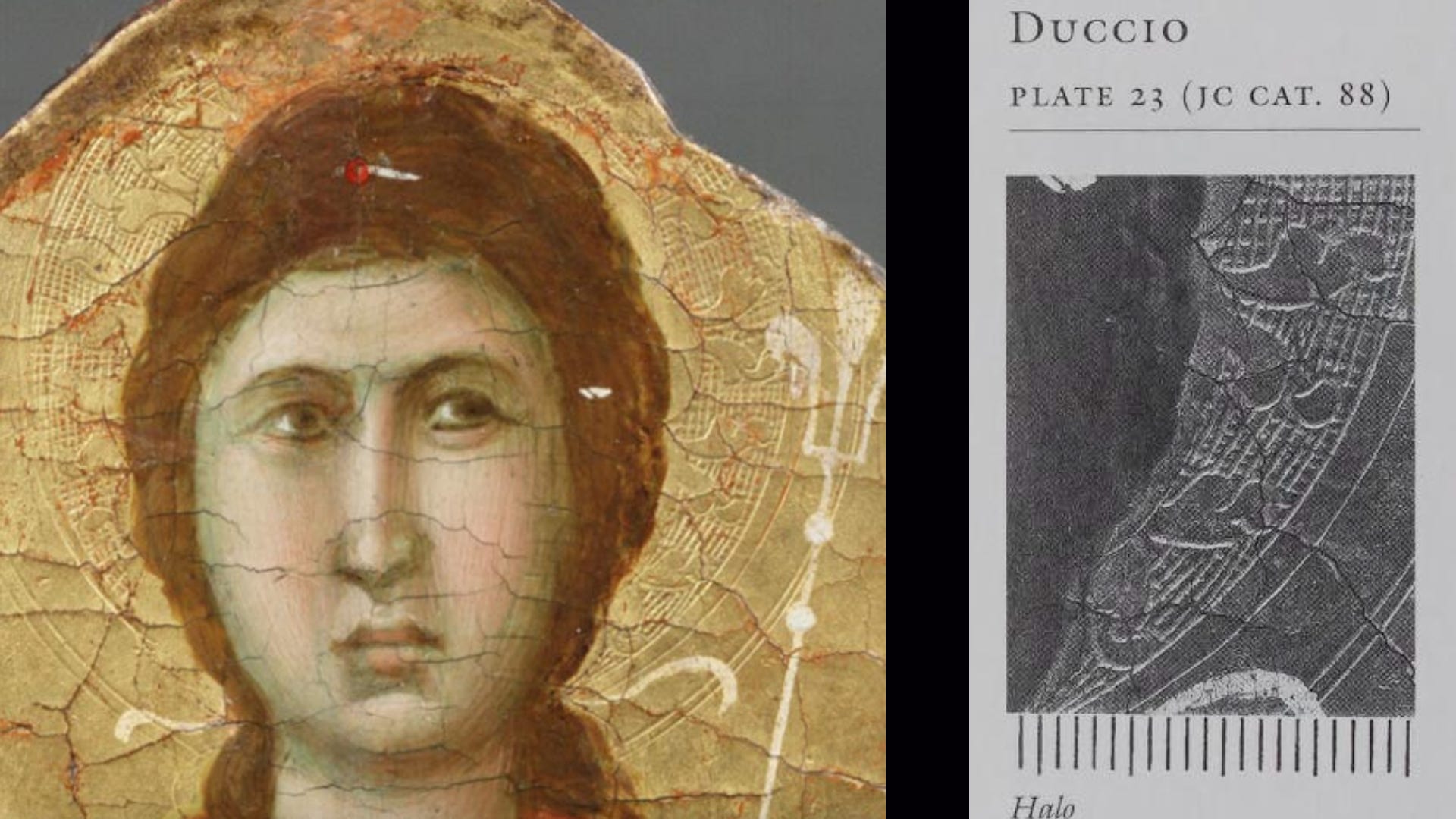 Art historians, resourceful people that they are, have looked very carefully at the so-called “punch marks” in these halos for decades.