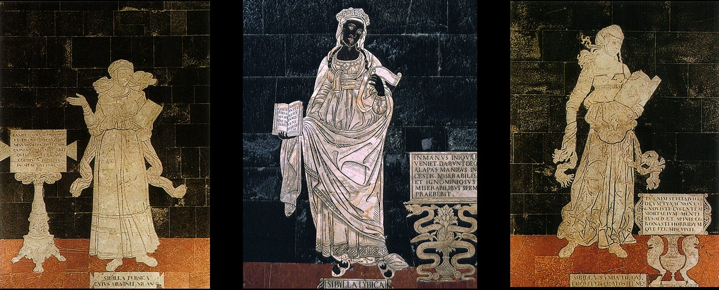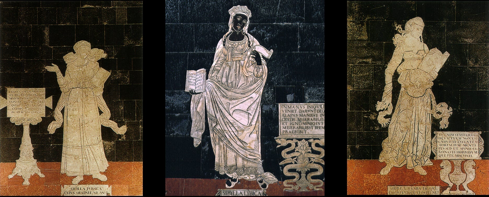 In last week’s piece, A Curious Conversion, I discussed how the ancient oracular Sibyls were subtly transformed into harbingers of Christ and widely incorporated throughout Renaissance sacred spaces, concluding with – yet again – the famous pavimento of Siena’s cathedral, with its depiction of all ten Varronian Sibyls.1 But I never focused on their actual images.