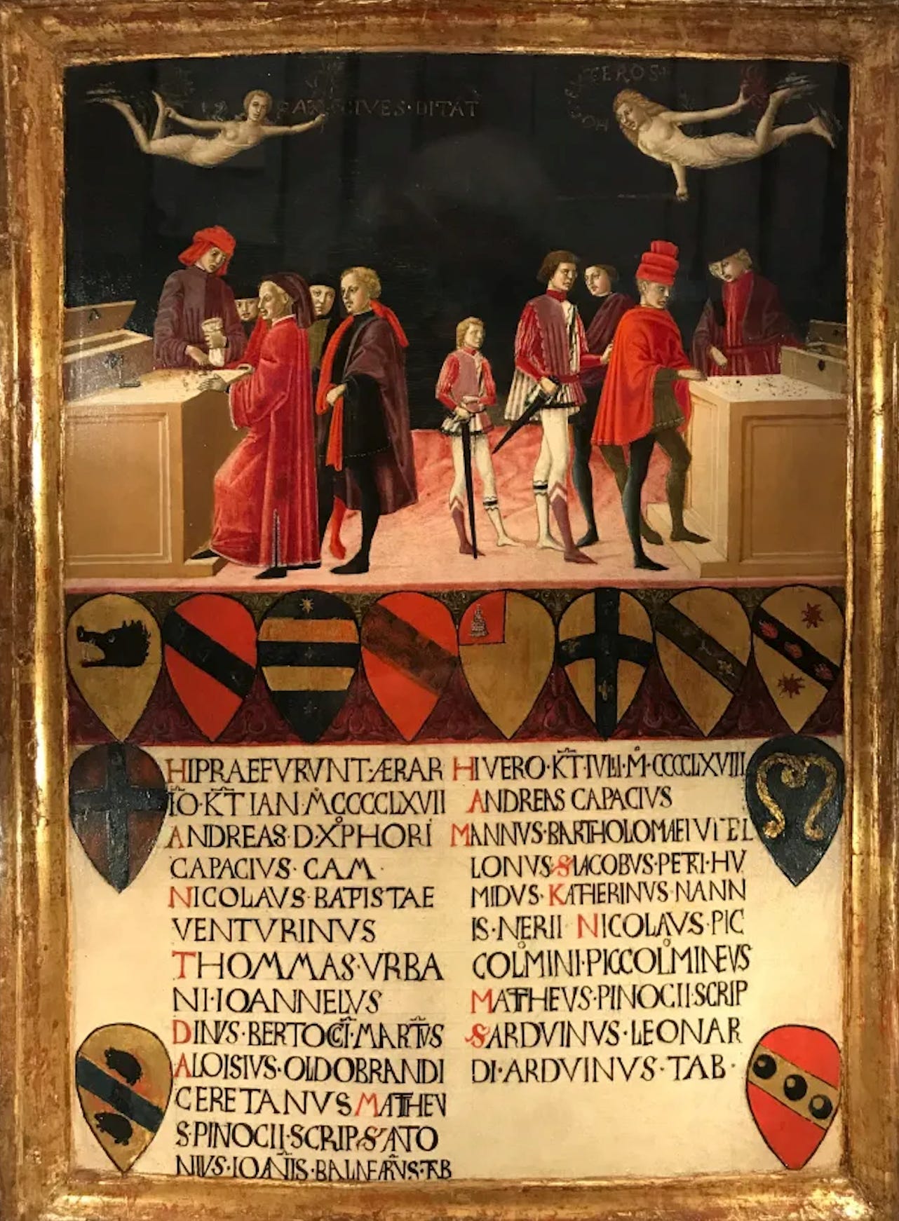 While it’s not entirely obvious why a depiction of the Hellespontine Sibyl is the ideal location to celebrate this contemporary political development,5 it’s worth pointing out that there are several notable precedents in Sienese art to celebrate the merits of peace with one’s neighbours, such as Ambrogio Lorenzetti’s Allegory of Good Government, with the figure of a prominently-displayed Peace calmly reclining in the centre,